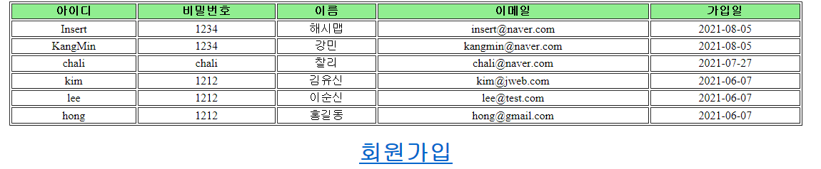 HashMap을 이용하여 모든 회원 정보를 조회할 때는 레코드의 컬럼 이름이 key, 그 값이 value 쌍이 되는 해시맵 형식으로 저장해야 한다.
