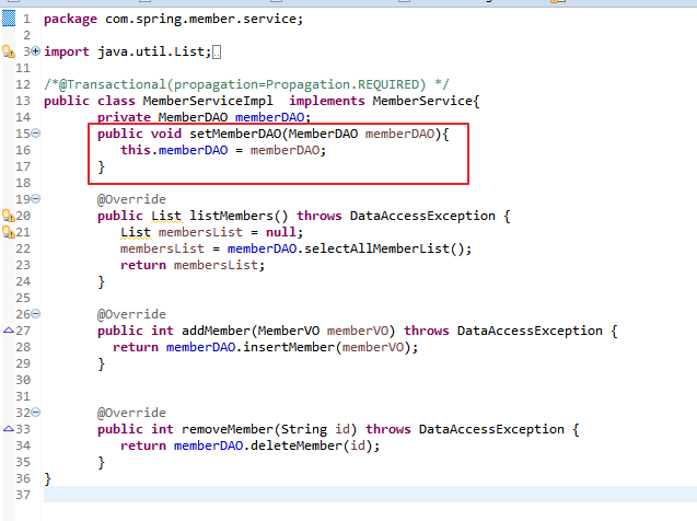 DAO르 ㄹ주입하는 setter을 MemberServiceImpl에 작성한다.