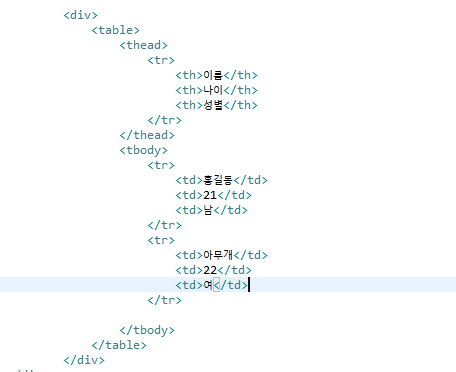 <tr> , <th>, <td> 를 쓰면 표를 만들 수 있다.