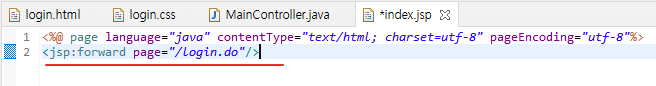 index페이지에서 login.do를 포워딩 시키면, 주소창에서 /DU/로 연결할 경우 /login.do를 통해 login.html 이 메인 화면으로 열리게 된다.