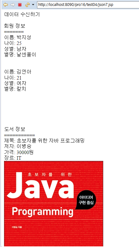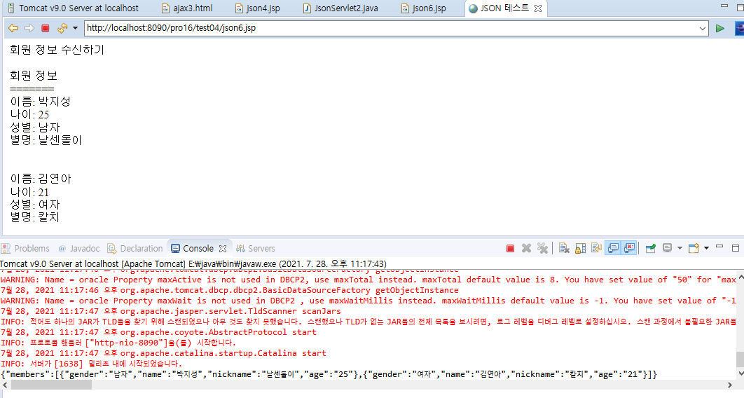 JSP에서 Ajax를 활용해 서블릿에서 웹페이지로 JSON 형식의 회원 정보를 전송해본다.